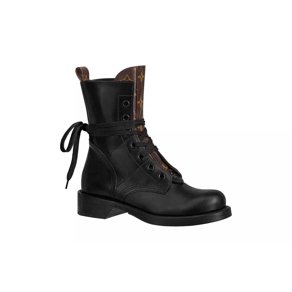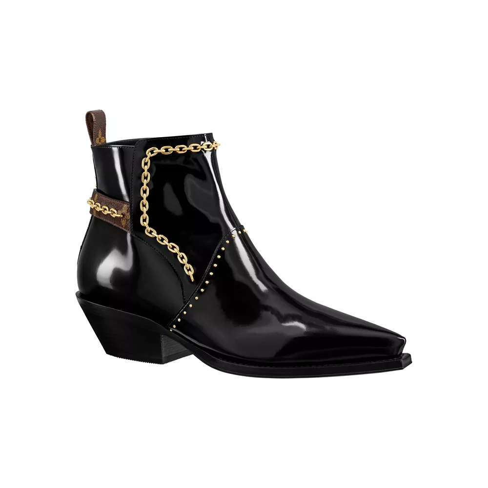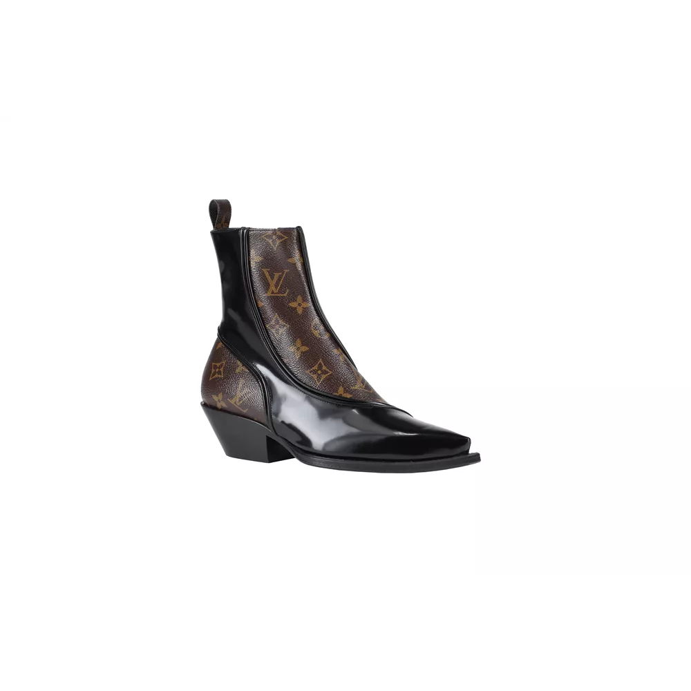 To iconic Monogram του οίκου βρίσκει τη θέση σ' ένα ζευγάρι Chelsea μπότες που αντανακλούν ένα ανδρόγυνο στιλ, ενώ τους ίδιους αισθητικούς κώδικες συναντάμε στα "Laureate" desert boots με τη ογκώδη πλατφόρμα, τα militaty "Metropolis", αλλά και τα "Matador", με το μεγάλο τετράγωνο τακούνι και τα pointed toes, που παραπέμπουν στο ύφος των Western ankle boots.