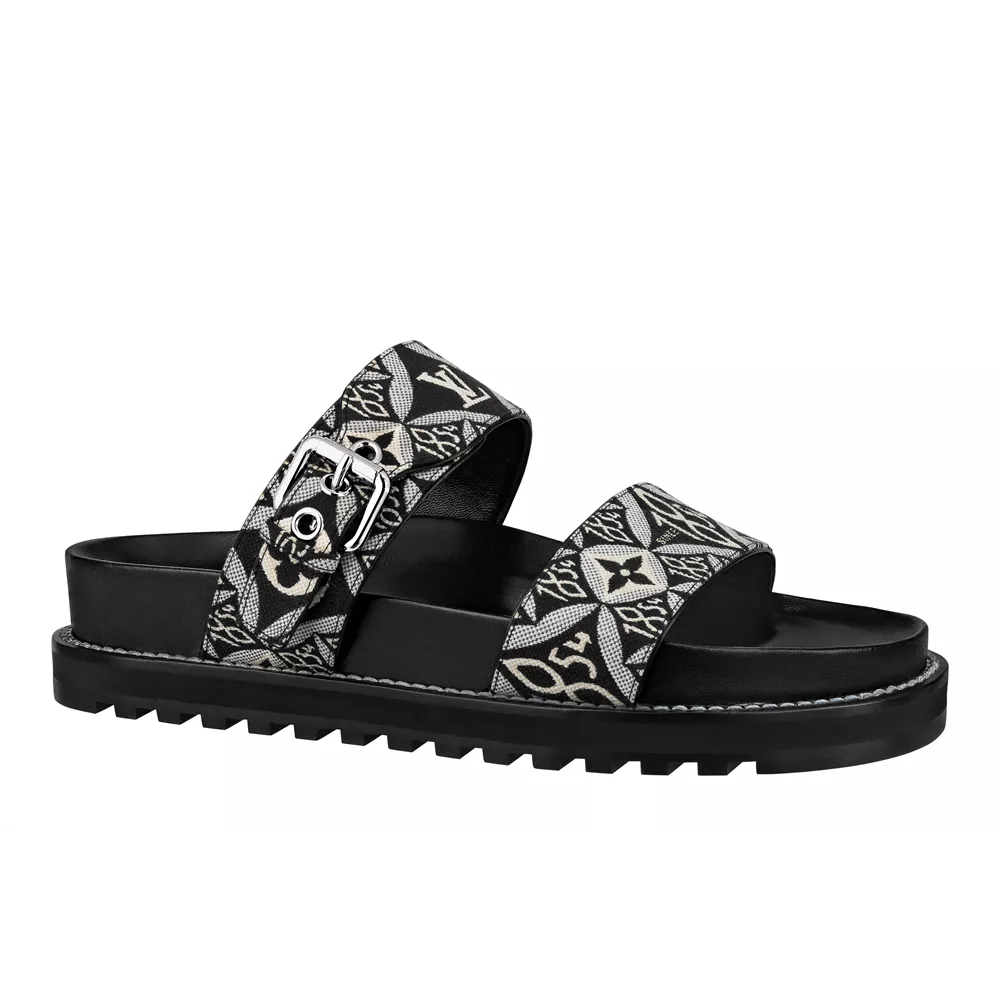 «Paseo» mules in «jacquard Since 1854», Louis Vuitton.