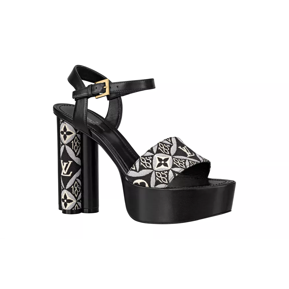 «Podium» platform sandals in «jacquard Since 1854», Louis Vuitton.