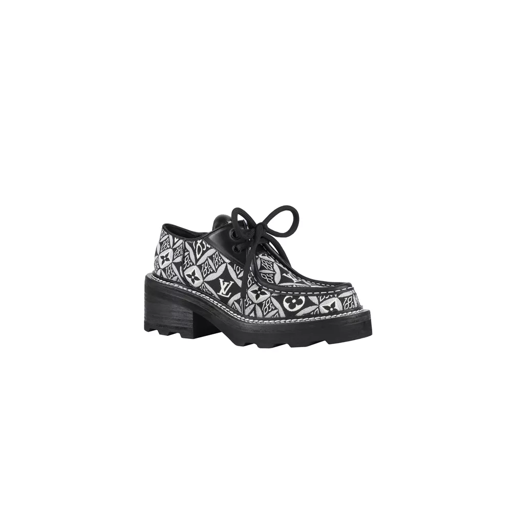 «LV Beaubourg» platform derbies in «jacquard Since 1854», Louis Vuitton.
