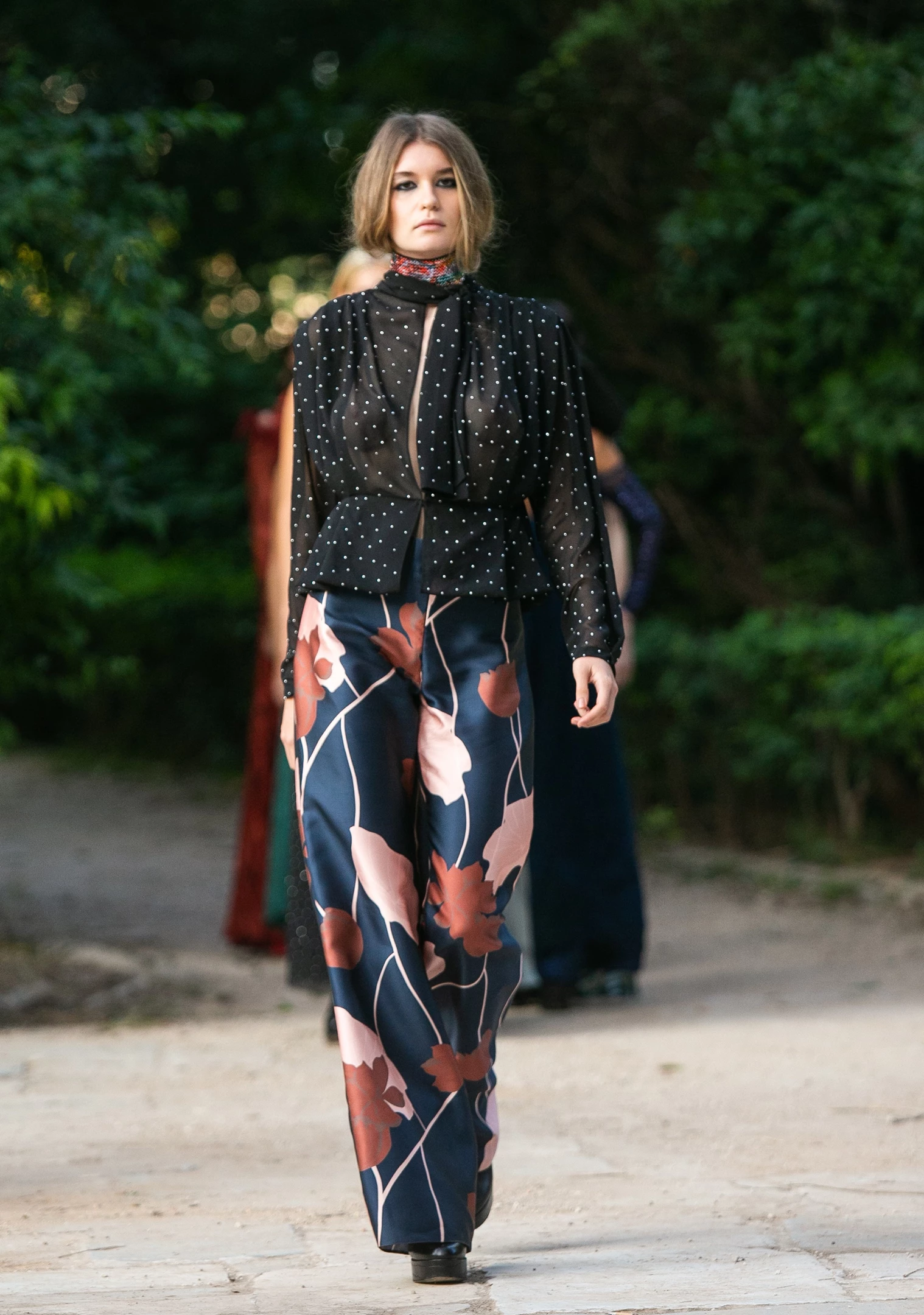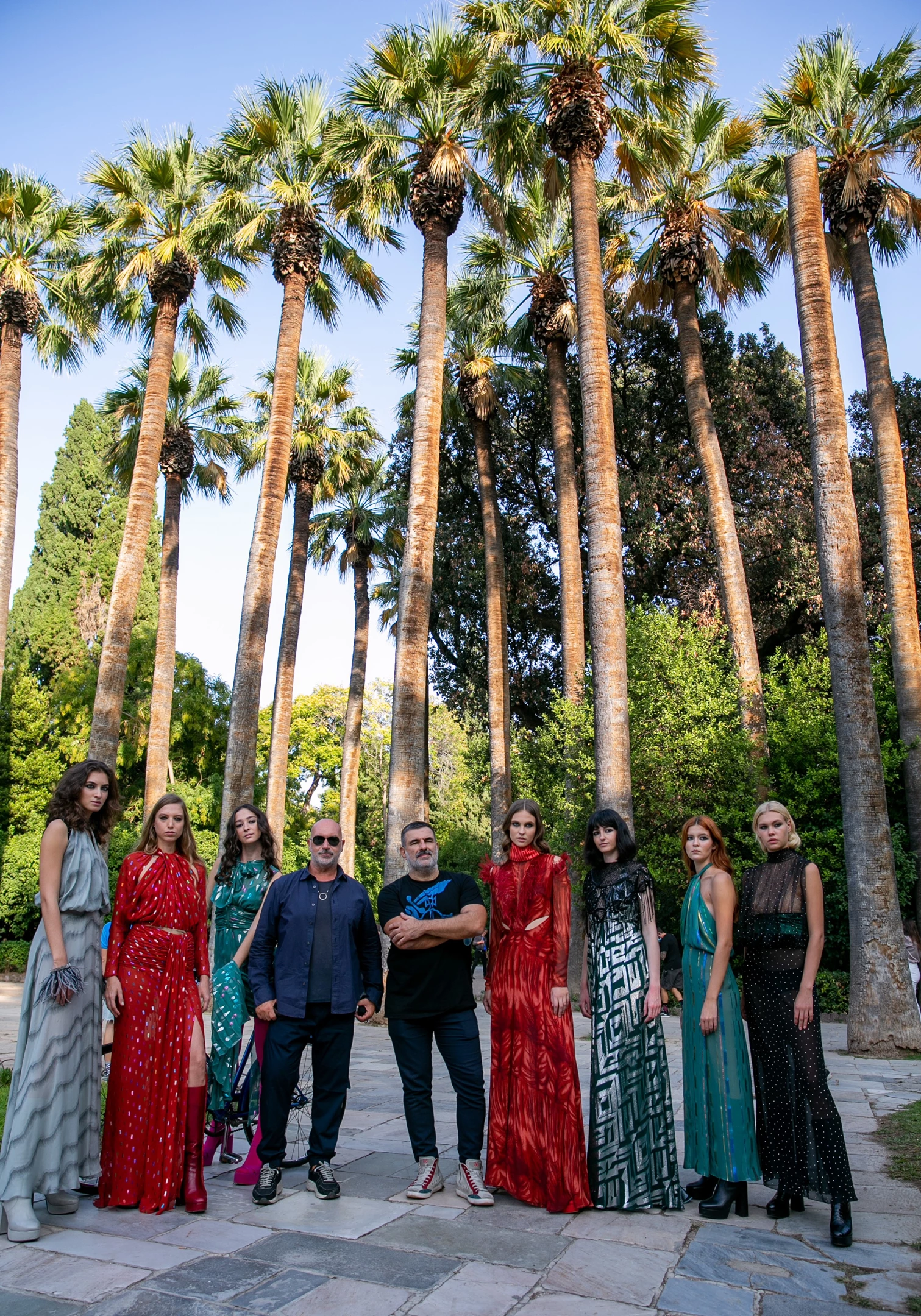 Τη νέα του συλλογή "Glam-Queens’ Park Rangers” παρουσίασε στον Εθνικό Κήπο το δημοφιλές σχεδιαστικό δίδυμο Deux Hommes, στην οποία οι Art-Deco και Art-Nouveau αναφορές και η κινηματογραφική ομορφιά του αμερικάνικου silver-screen των 30s συναντιούνται με τη διασκεδαστική υπερβολή και την genderless γοητεία των glam-rockers. Οι αποχρώσεις του πράσινου, το βαθύ μπλε, το κασμίρ- ζέρσεϊ σε χρώματα της σκουριάς, έρχονται σε αντίθεση με τα "κοφτερά" new metallics, τα heavy-metal studs και τους pop ιριδισμούς, ενισχύοντας το παιχνίδι της αναζήτησης του καινούργιου μέσα από ένα εκκεντρικό remix του παρελθόντος.