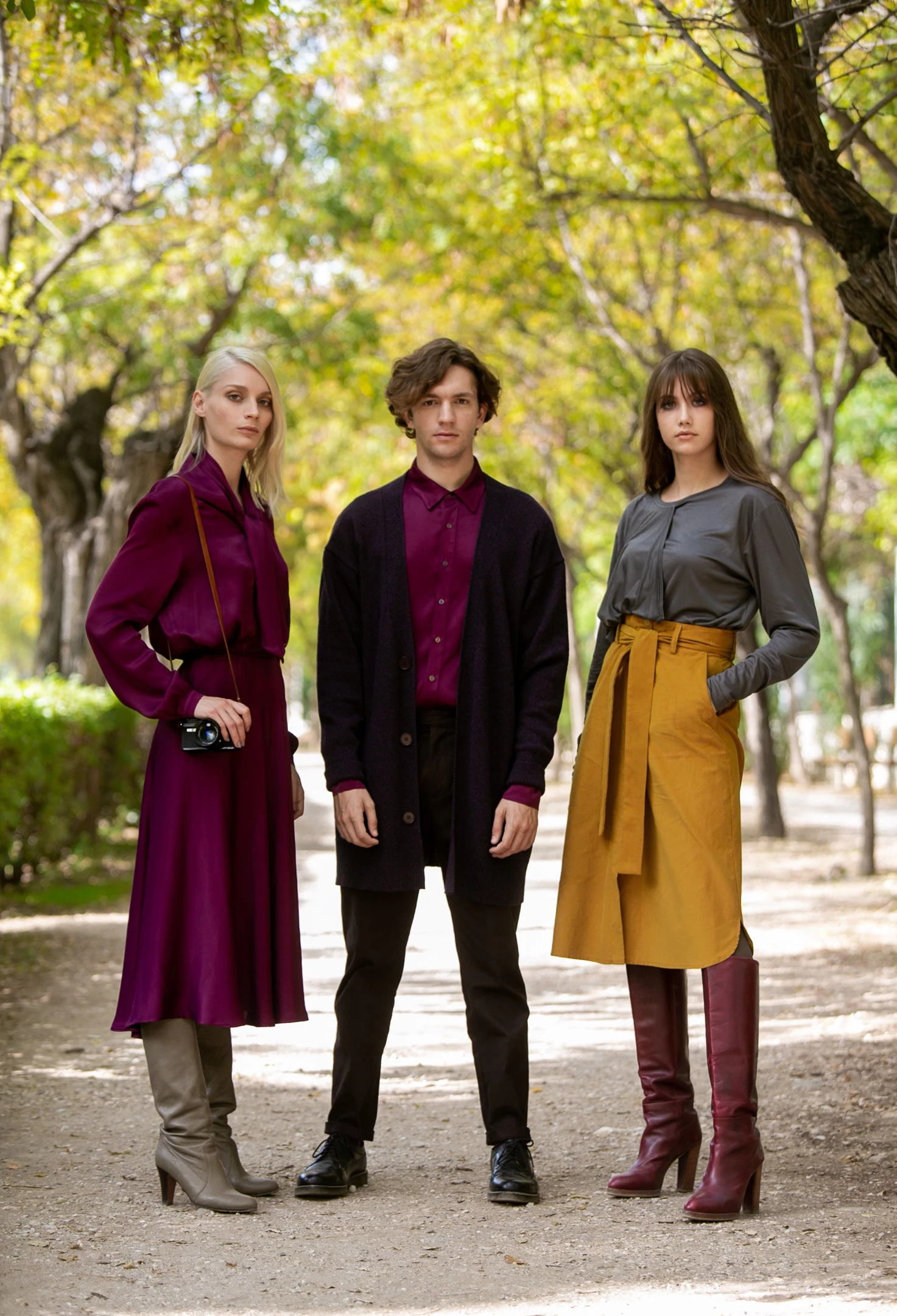 Γεωμετρικά σχέδια και vintage διάθεση συνδυάζονται με θερμούς μουσταρδί και δαμασκηνί τόνους, παραπέμποντας σε ήρεμα χειμερινά απογεύματα με νότες lounge μουσικής. Ξεχωρίζουν τα σατέν πουκάμισα και οι shiny grey μπλούζες, χωρίς ωστόσο να λείπουν οι αυστηρές γραμμές και οι ψυχρές αποχρώσεις του γκρι και του μαύρου, υπογραμμίζοντας τη διαχρονική minimal αισθητική του οίκου.