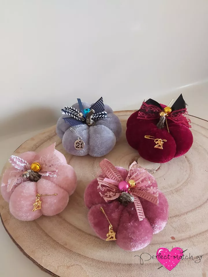 Χειροποίητο διακοσμητικό γούρι βελούδινη κολοκύθα, perfect-match.gr