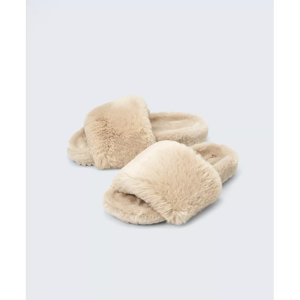 Ανοιχτή παντόφλα με συνθετική γούνα, Oysho.