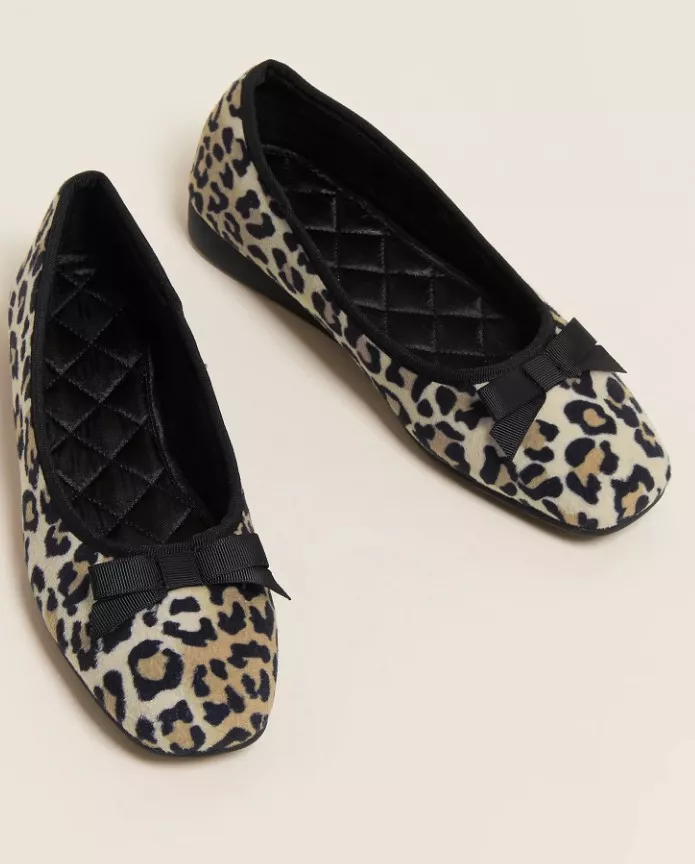 Βελουτέ παντόφλες με τακούνι με φιόγκο και λεοπάρ print, Marks&Spencer
