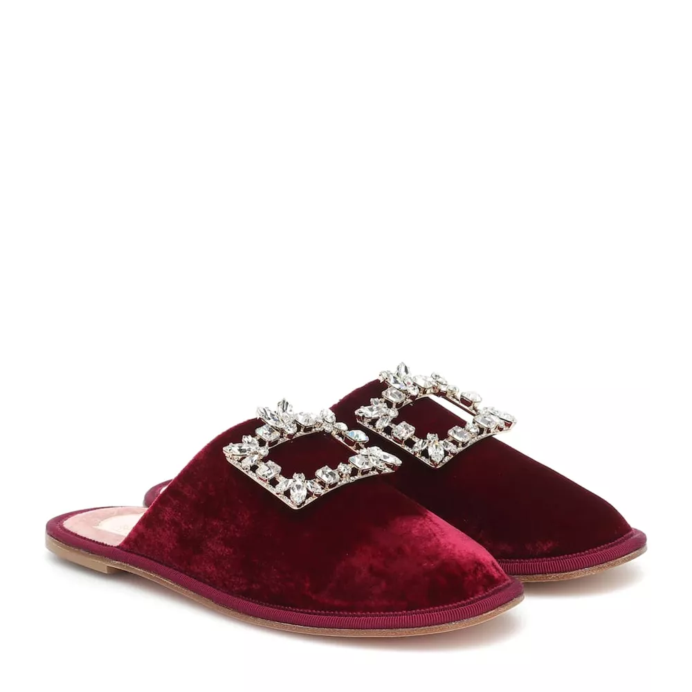 Κόκκινες βελούδιες «Hotel Vivier» slippers με στρας, Roger Vivier.