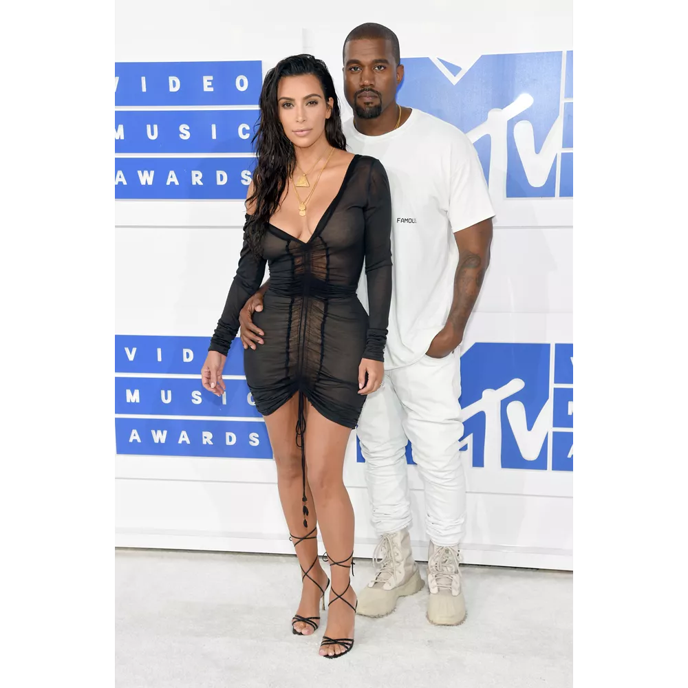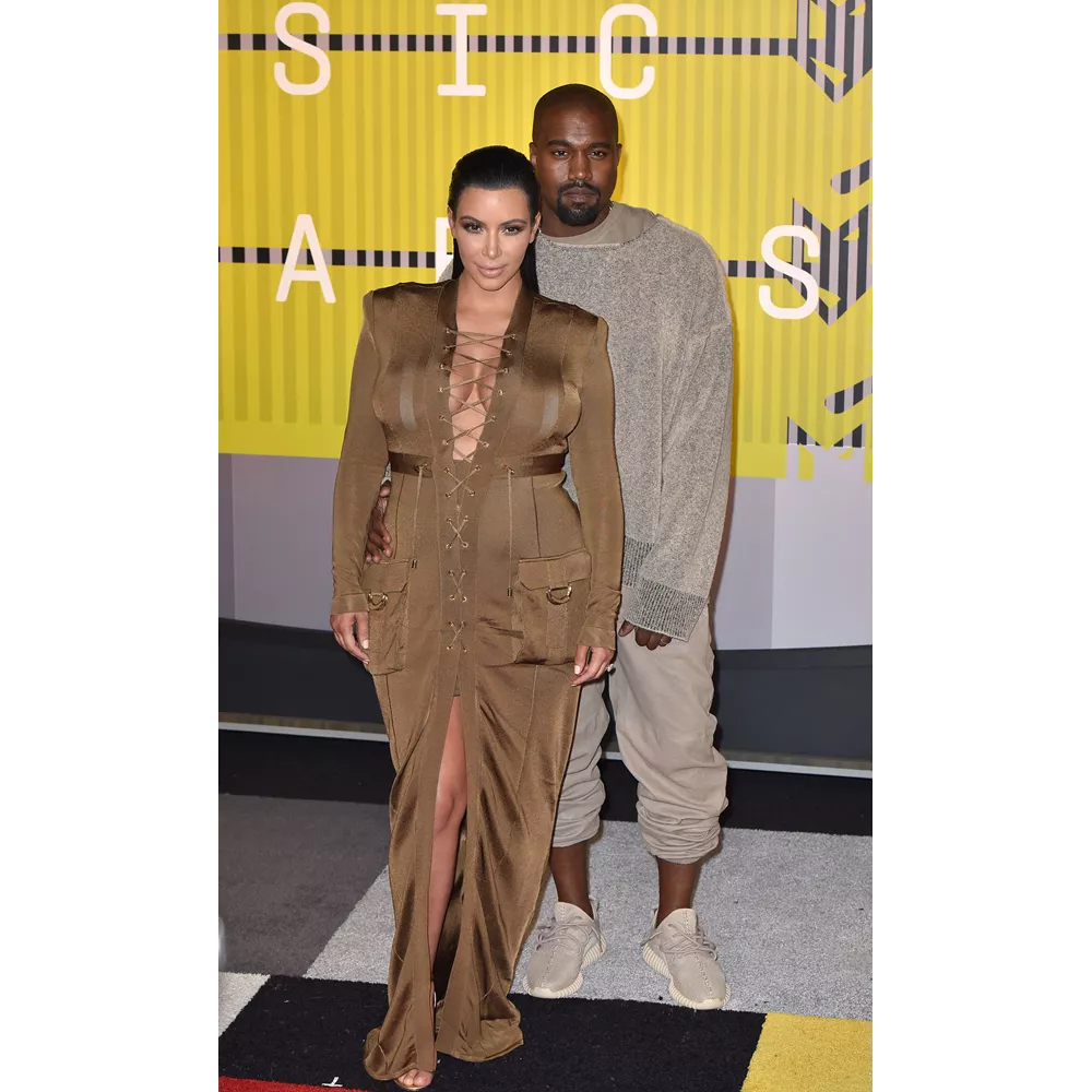 Στα MTV Video Music Awards του 2015. Η Kim φοράει Balmain φόρεμα και ο Kanye κομμάτια της συλλογής του Yeezy.