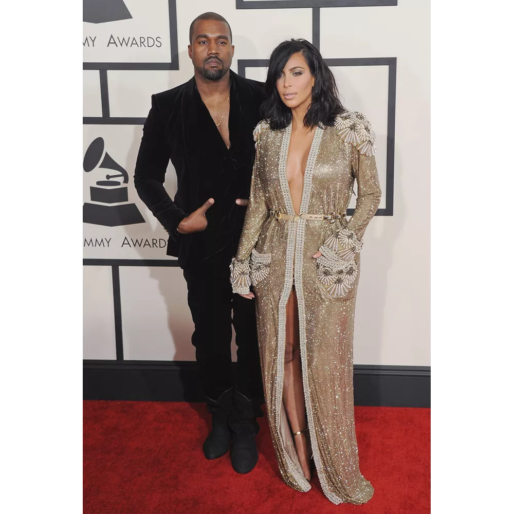 Στα 57th Grammy Awards το 2015. Η Kim Kardashian φοράει δημιουργία Jean-Paul Gautier.