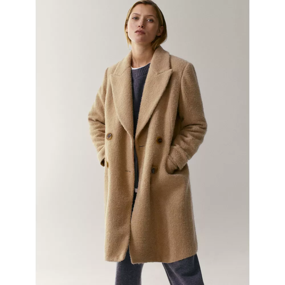 Παλτό από μπουκλέ μαλλί - καμηλό, Massimo Dutti.