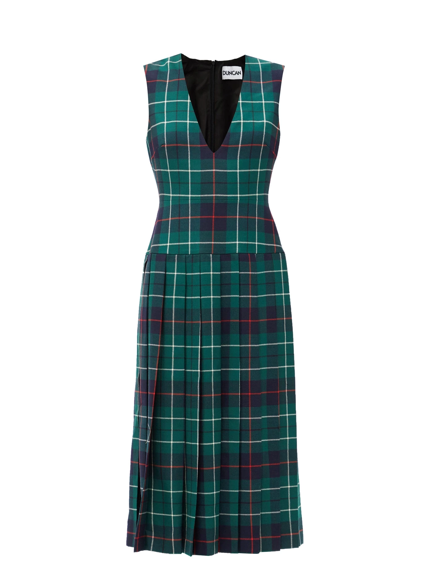 Το tartan φόρεμα με τη ζώνη στη μέση και το Peter Pan–style κολάρο ανήκει στη συλλογή της σχεδιάστριας Emilia Wickstead, που κομμάτια της βρίσκονται στη γκαρνταρόμπα της δούκισσας εδώ και καιρό. Η πλισέ φούστα σε καρό tartan, που η Middleton φόρεσε για μία ακόμα φορά φέτος το Χριστούγεννα έρχεται να επιβεβαιώσει την αγάπη της στο συγκεκριμένο print.