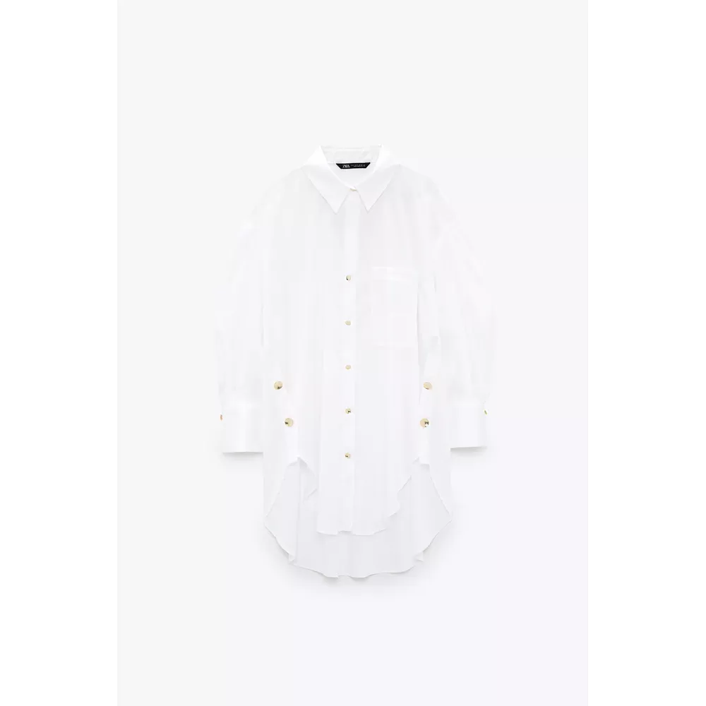 Μακριά μπλούζα με χρυσά κουμπιά, Zara.