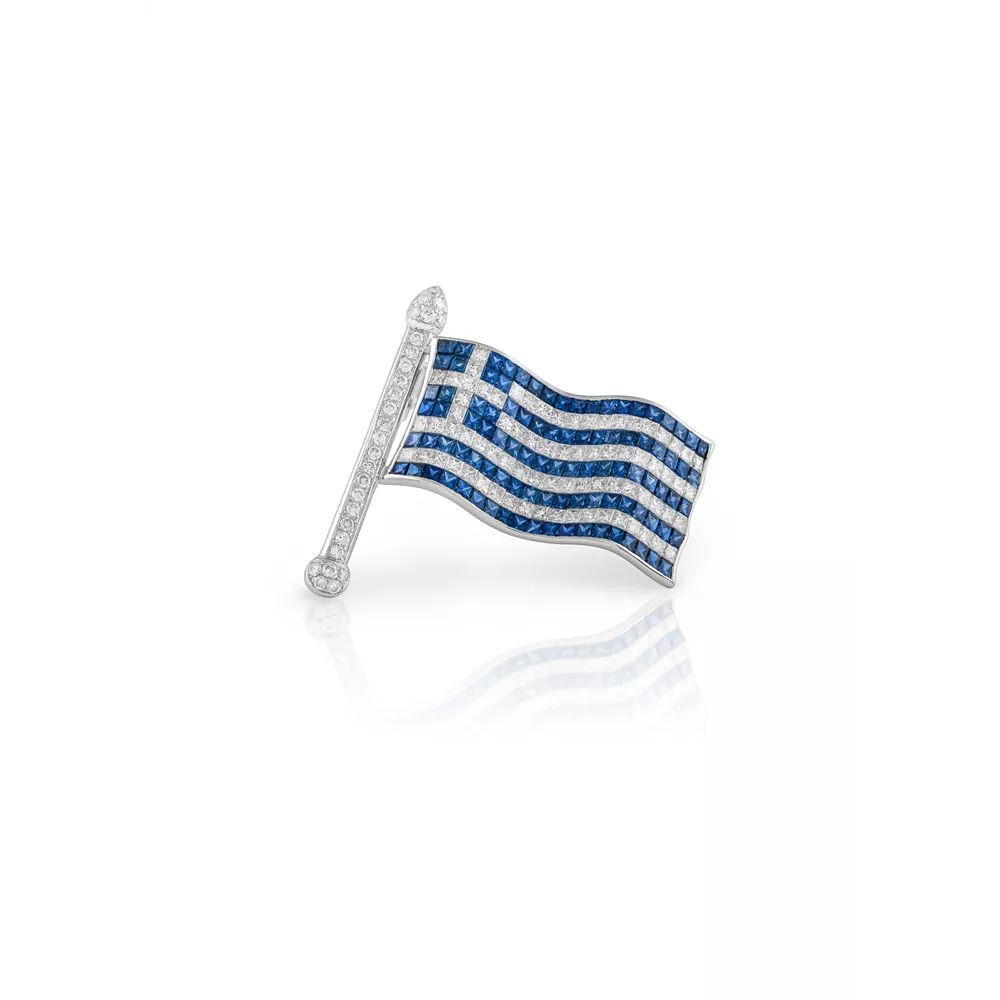 Κόσμημα Ελληνική Σημαία από διαμάντια και ζαφείρια, Danelian.
