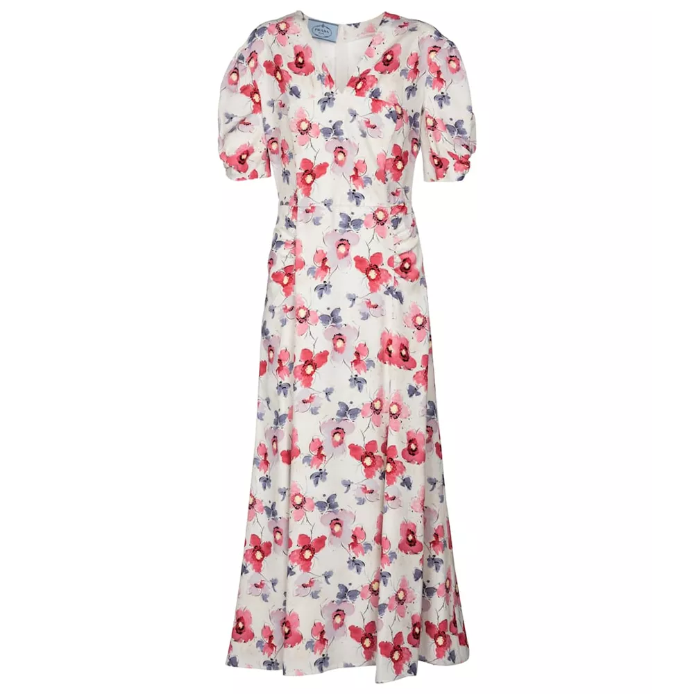 Φλοράλ σατέν μίντι φόρεμα, Prada.