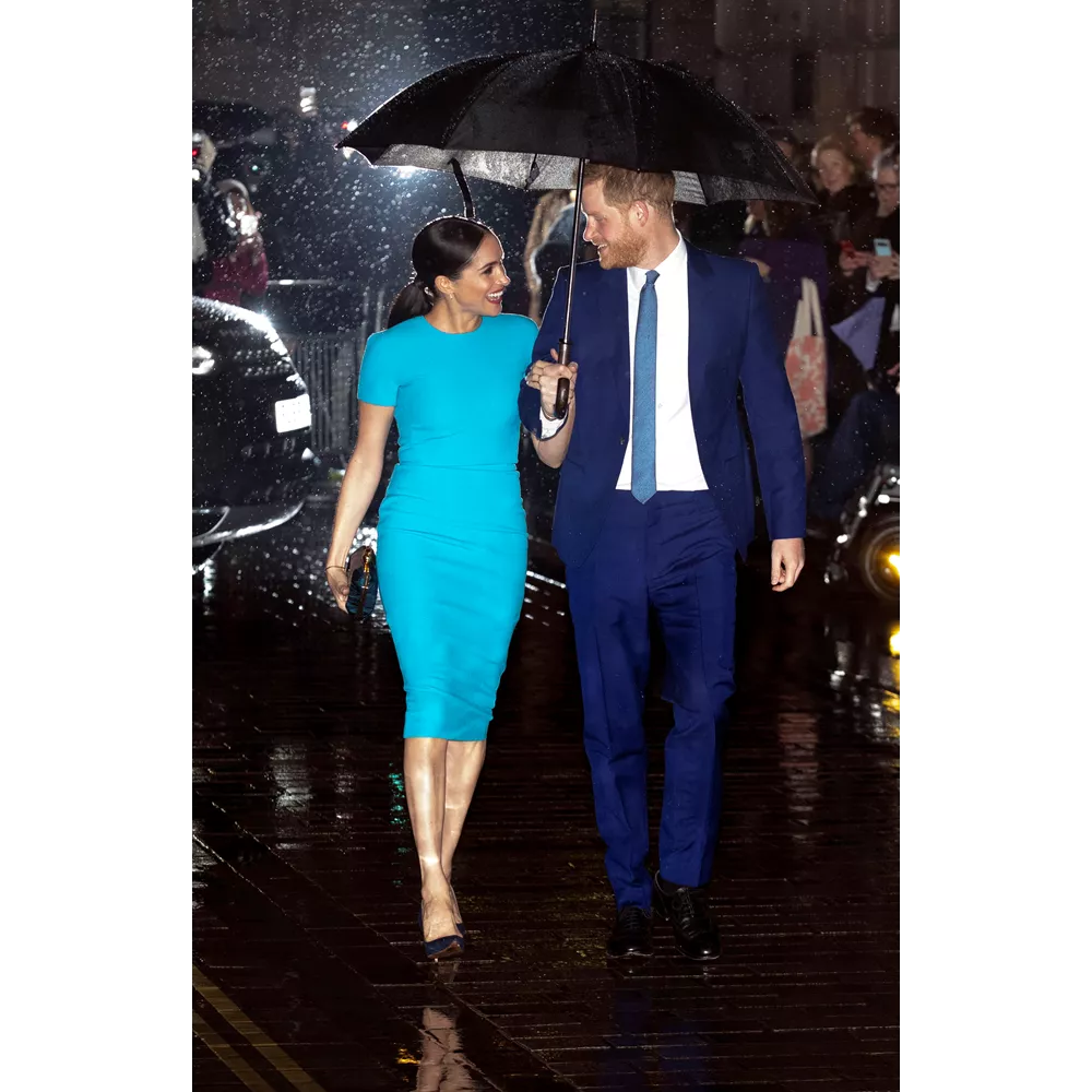 Στην τελευταία εμφάνιση τους ως μέλη της βασιλικής οικογένειας η Meghan επέλεξε ένα γαλάζιο φόρεμα της Victoria Beckham.