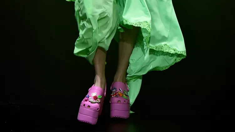 Για την ιστορία, η πρώτη συνεργασία του οίκου με την εταιρεία ήταν το 2018, όταν ο Gvasalia έστειλε τα μοντέλα του στην πασαρέλα με πανύψηλες πλατφόρμες Crocs σε κίτρινο, πράσινο, ροζ και μαύρο χρώμα. Κανείς - και τότε- δεν είπε "πόσο ωραία παπούτσια", ωστόσο εκείνη η συλλογή ξεπούλησε έστω κι αν το κόστος κάθε ζευγαριού άγγιξε τα 670€!