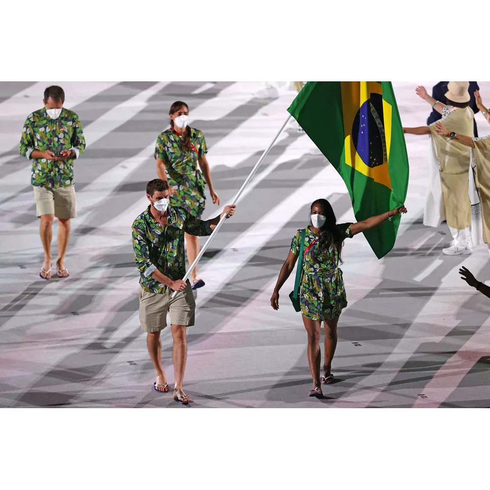 Η αποστολή της Βραζιλία με tropic prints στη στολή τους και σαγιονάρες Havaianas.