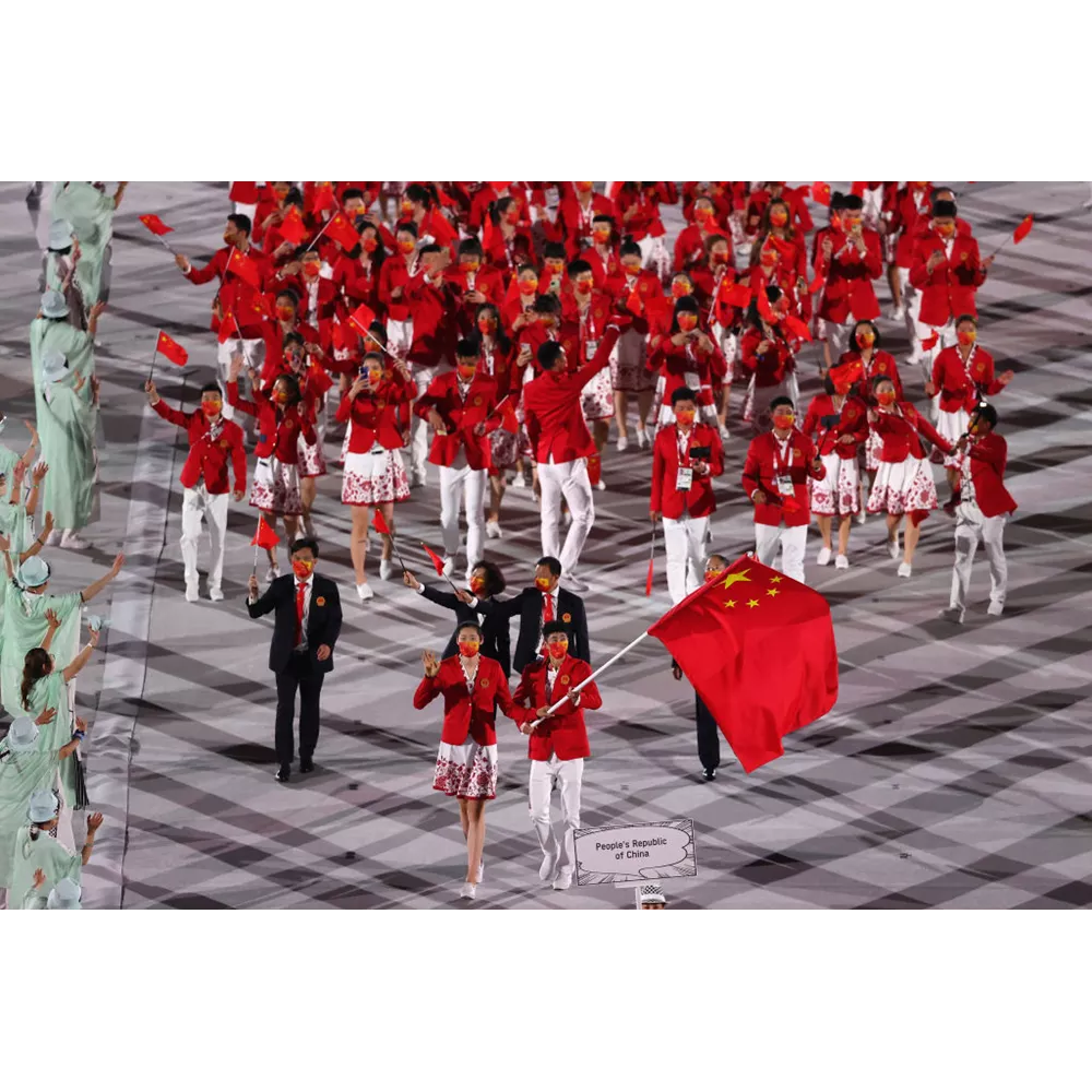Η στολή των αθλητών της Κίνας συνδυάζει το λευκό και το κόκκινο. Ξεχωρίζουν τα φορέματα των αθλητριών με τα φλοράλ μοτίβα.