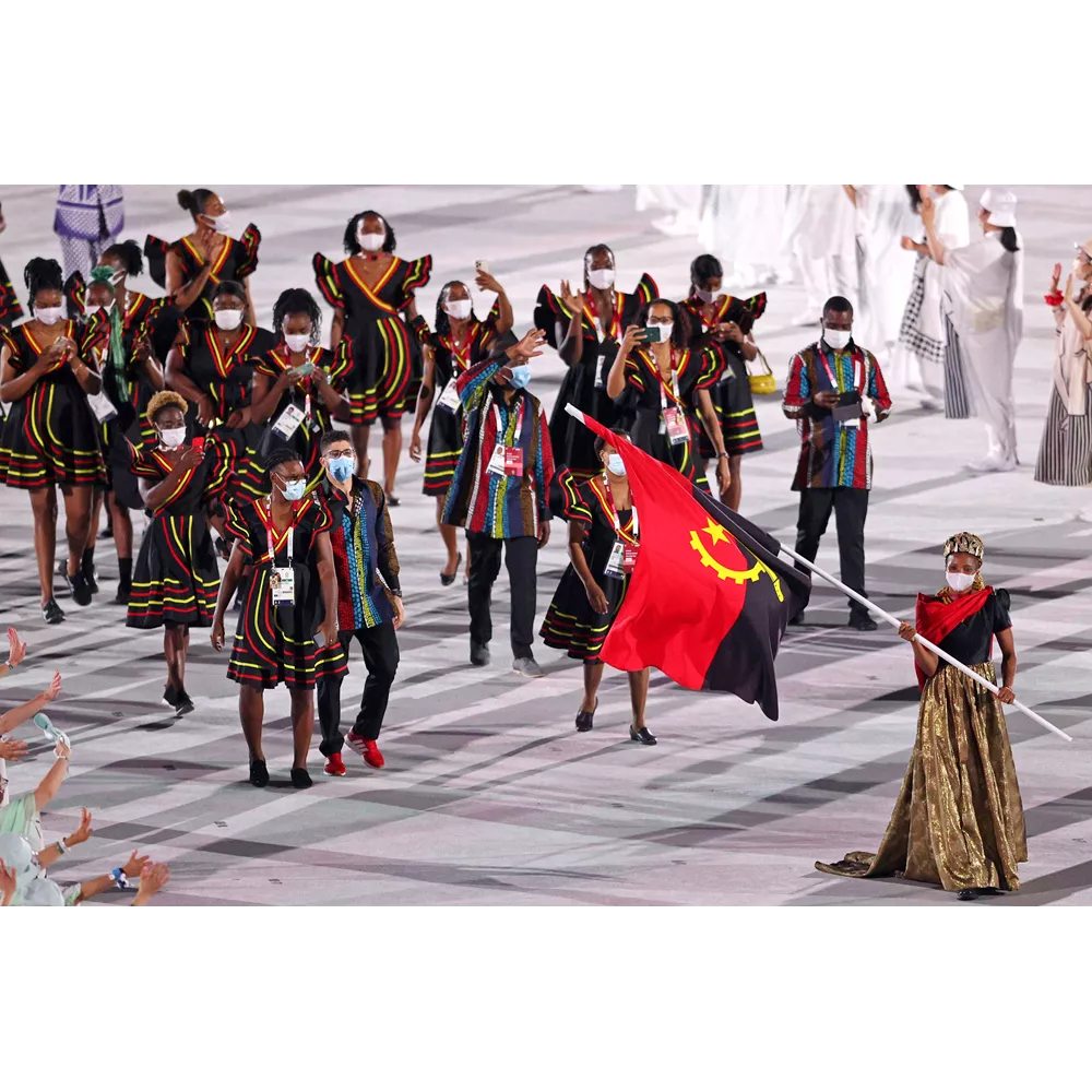 Οι αθλήτριες της Ανγκόλα με υπέροχα μίνι φορέματα με βολάν, στα χρώματα της σημαίας της χώρας τους.