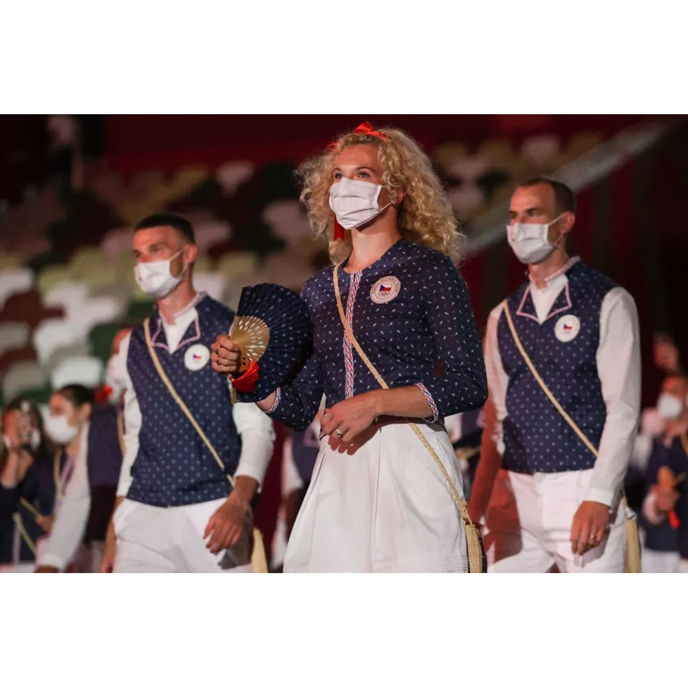 Οι αθλητές της Τσεχίας με στολές που φέρουν ένα παραδοσιακό της χώρας τους μοτίβο.
