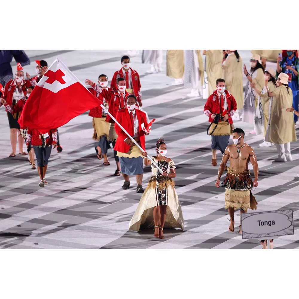 Η αποστολή της Τόγκα με επικεφαλής τον Pita Taufatofua, που εμφανίστηκε μόνο με την παραδοσιακή φούστα της χώρα του, όπως είχε κάνει και στους Ολυμπιακούς Αγώνες του Ρίο το 2016.