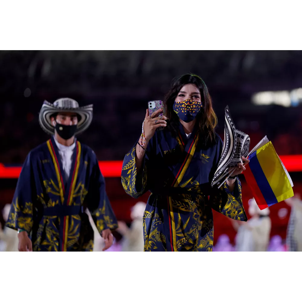 Οι στολές της Κολομβίας συνδυάζουν στοιχεία της ιαπωνικής και κολομβιανής κουλτούρας: οι αθλητές εμφανίστηκαν με κιμόνο- παραδοσιακό ιαπωνικό ένδυμα- σε χρώματα και σχέδια όμως που παραπέμουν στη σημαία της Κολομβίας.