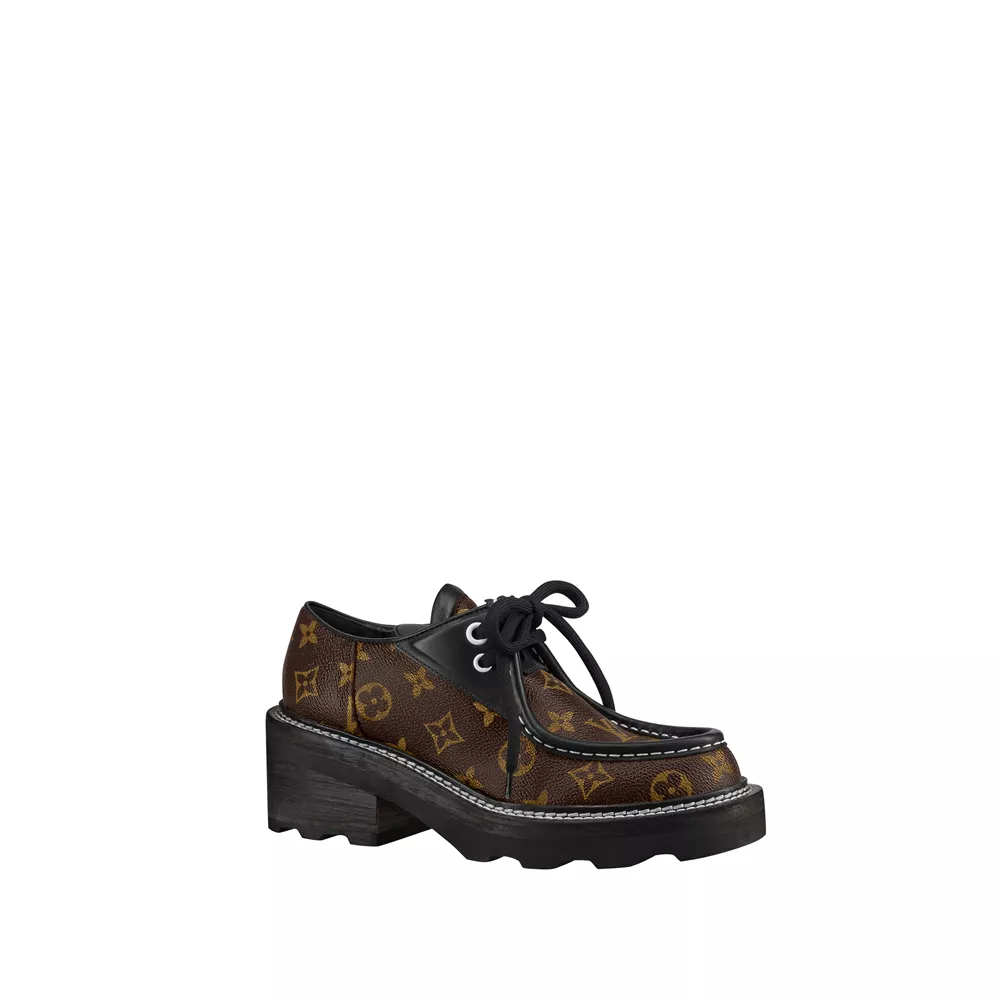 Τα LV Beaubourg derby παπούτσια πρωτοεμφανίστηκαν στην collection του 2019 και αποτελούν το τέλειο masculine / feminine σχέδιο. Διαθέτουν chuncky πλατφόρμα που ωστόσο δείχνει εξαιρετικά ελαφριά, ενώ η λευκή ραφή δημιουργεί αντίθεση. O εξωτερικός καμβάς με το LV μονόγραμμα συμπληρώνεται από επένδυση από νεοπρένιο και τα κορδόνια του είναι τα ίδια μ' αυτά που συναντάμε στα Archlight sneakers. Τα LV Beaubourg derby είναι η "μοντέρνα κλασική" επιλογή που μπορεί να σταθεί με επιτυχία σε κάθε look.