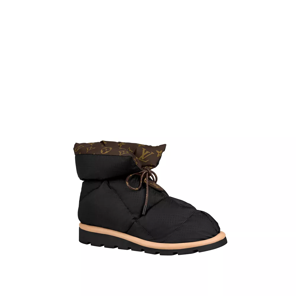 Στη νέα συλλογή συναντάμε ξανά ένα από τα ζευγάρια που δημιούργησαν αίσθηση και φορέθηκαν από τις πιο ενημερωμένες fashionistas του πλανήτη την περσινή σεζόν: τις Pillow boots. Από ανακυκλωμένο καπιτονέ νάιλον και με γέμιση από φτερά, τα Pillow comfort ankle boots επιστρέφουν ως η πιο ανάλαφρη και εύκαμπτη υβριδική μπότα που μιμείται την άνεση που προσφέρουν τα down jackets, κρατώντας παράλληλα το πόδι πολύ σταθερό. Οι μπότες Pillow κατασκευάζονται από ECONYL®, ένα μοναδικό υλικό από 100% ανακυκλωμένες και ανακυκλώσιμες νάιλον ίνες, που προέρχονται από την επεξεργασία πλαστικών αποβλήτων από τους ωκεανούς. Το ζευγάρι είναι διαθέσιμο σε 3 χρώματα- μαύρο, χακί και λευκό, όλα με εσωτερική νάιλον επένδυση με το LV μονόγραμμα.