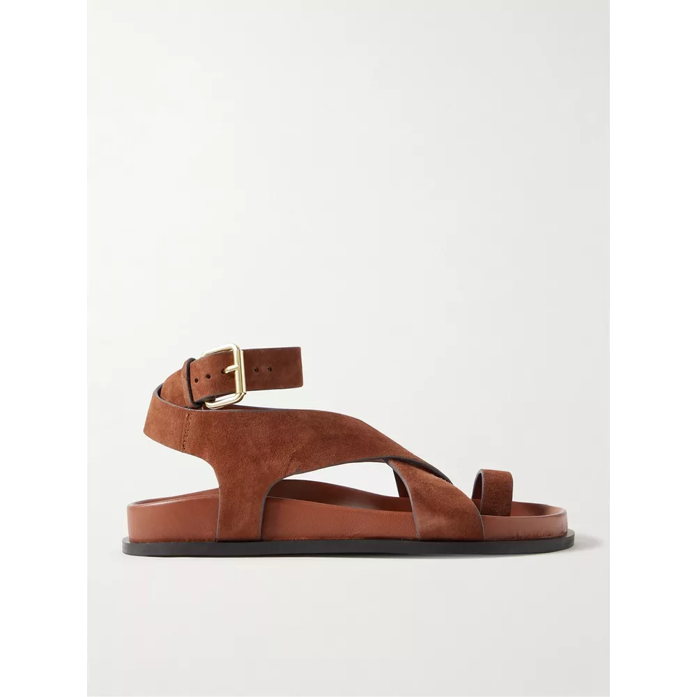 Τα μινιμαλιστικά σουέτ σανδάλια "Jalen" του brand A.EMERY είναι τέλεια για να τα πακετάρετε στη βαλίτσα των πασχαλινών αποδράσεων, ενώ ένα παρόμοιο σχέδιο, φλατ σανδάλια με λουριά σε χακί σουέτ δέρμα, από τη Massimo Dutti προσφέρεται επίσης για κομψά casual outfits. O Gianvito Rossi προτείνει τα σουέτ σανδάλια "Lianne" που μπορείτε να συνδυάσετε με τα ανάλαφρα φορέματα και τις φούστες που θα φορέσετε την άνοιξη, ενώ στη συλλογή Tom Ford, που φιλοξενεί το κατάστημα Luisa World, ανακαλύψαμε τη σουέτ εκδοχή ενός παπουτσιού που επίσης ξεχωρίζει στις τάσεις: τα gladiator sandals.