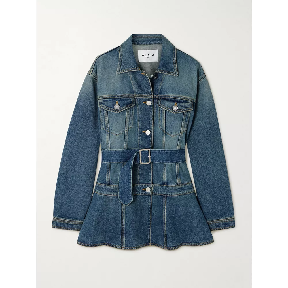 Denim peplum τζάκετ με ζώνη, Alaïa.