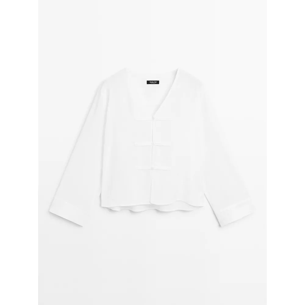 Υφασμάτινη μπλούζα ιαπωνικού στιλ με λινό, Massimo Dutti.