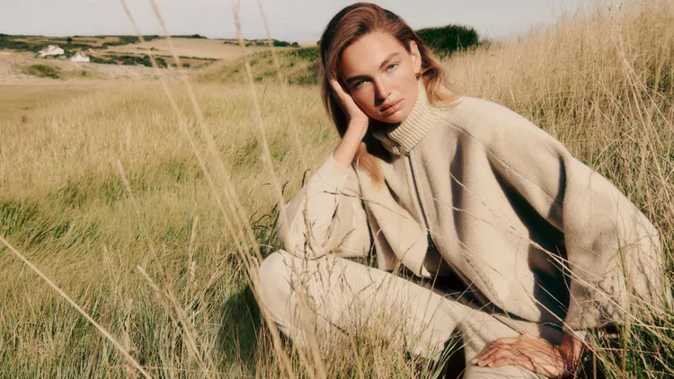 Το editorial φωτογραφήθηκε στο εντυπωσιακό σκηνικό των Seven Sisters, στην καρδιά του South Downs National Park στην Αγγλία. Οι λευκοί βράχοι που υψώνονται πάνω από τον ωκεανό, γίνονται η τέλεια μεταφορά της δυαδικότητας: η μία πλευρά άγρια και βραχώδης κοιτάζει προς τη θάλασσα, ενώ η άλλη, πράσινη και απαλή, κατηφορίζει προς την ενδοχώρα. Όπως ακριβώς η φύση αποκαλύπτεται με δύο όψεις, έτσι και τα ενδύματα της Falconeri αποκαλύπτουν φυσικά τη διπλή τους φύση, κλασικά και κομψά ή πιο σύγχρονα και χαλαρά.