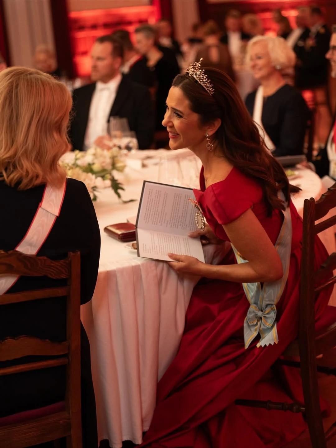 Στο look της, η βασίλισσα Mary συνδύασε το μπορντό σακάκι χωρίς γιακά, και με τσέπες στα πλαϊνά, από τη Massimo Dutti (σ.σ.: το κομμάτι ανήκει σε παλαιότερη συλλογή) με μία πλισέ μίντι φούστα σε Α γραμμή, από stretch-wool, της συλλογής Max Mara FW'25 και μαύρες δερμάτινες μπότες με τετράγωνο τακούνι από τον Gianvito Rossi. Η "έξυπνη" λεπτομέρεια στην εμφάνισή της ήταν η διπλής σειράς δερμάτινη ζώνη της Max Mara που είχε προσθέσει πάνω από το σακάκι της, κάνοντας statement σε μία αρκετά λιτή και κομψή εμφάνιση. Το look της ολοκλήρωσε με δερμάτινα γάντια σε μπορντό και χρυσά κοσμήματα.