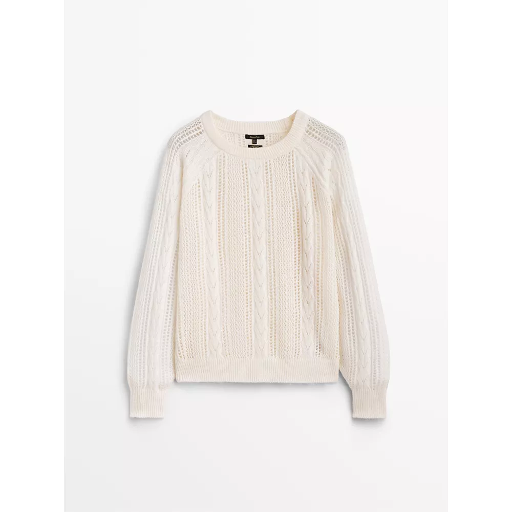 Πουλόβερ με πλεξίδες και γεωμετρικά κοψίματα, Massimo Dutti.