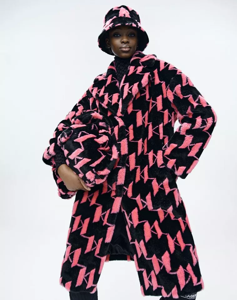 Faux fur coat με μονόγραμμα Karl Lagerfeld