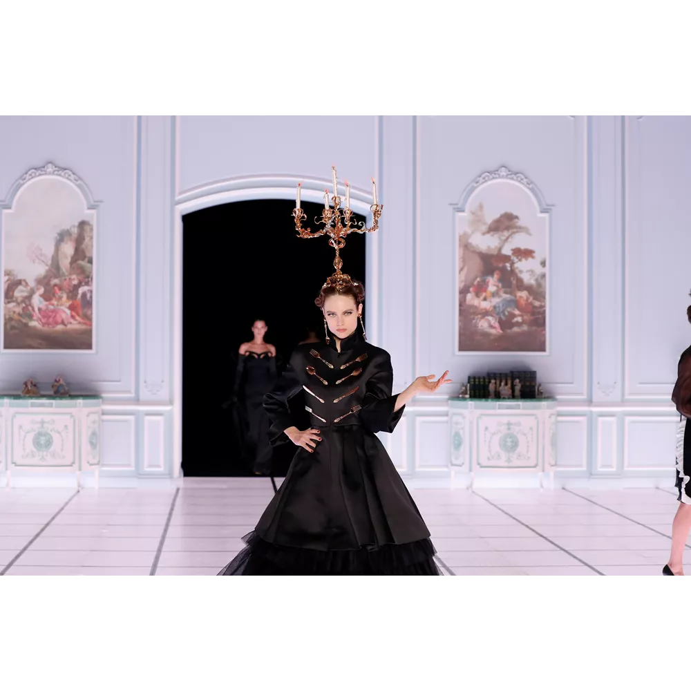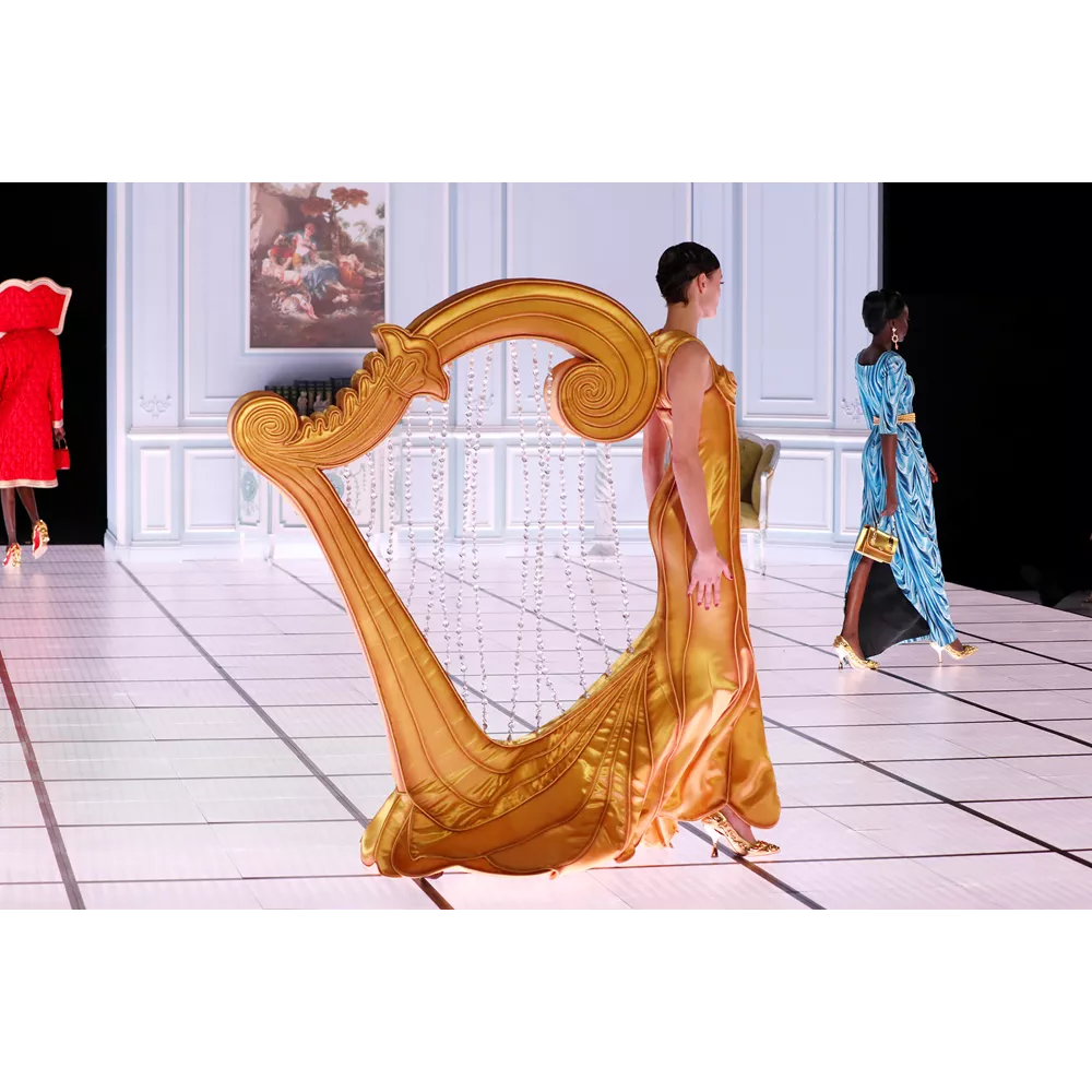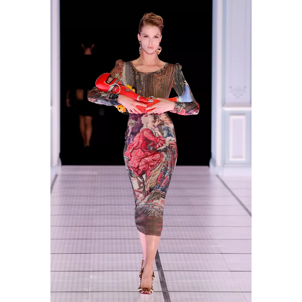 Οι λεπτομέρειες από τη διακόσμηση ενός μπαρόκ σπιτιού, όπως οι καπιτονέ βελούδινοι καναπέδες και τα σκαλιστά φινιρίσματα στα μπράτσα τους, τα ρολόγια τοίχου με εκκρεμές, οι φούντες που δένουν τις κουρτίνες, τα σχέδια από τις ταπετσαρίες, οι πίνακες ζωγραφικής μαζί με τα βαριές σκαλιστές κορνίζες τους, οι παρτιτούρες του πιάνου, οι πολυέλαιοι και τα κηροπήγια, οι πορσελάνες, τα παραβάν, τα χρυσά κλουβιά, τα περσικά χαλιά, η άρπα και πολλά άλλα συναρπαστικά στοιχεία επίπλωσης, ζωντανεύουν μέσα από τα σχέδια της συλλογή Moschino και παίρνουν τη μορφή extravagant evening gowns, little black dresses, tuxedo κοστουμιών, ιδιότροπων αξεσουάρ και εκκεντρικών headpieces, και statement παπουτσιών.