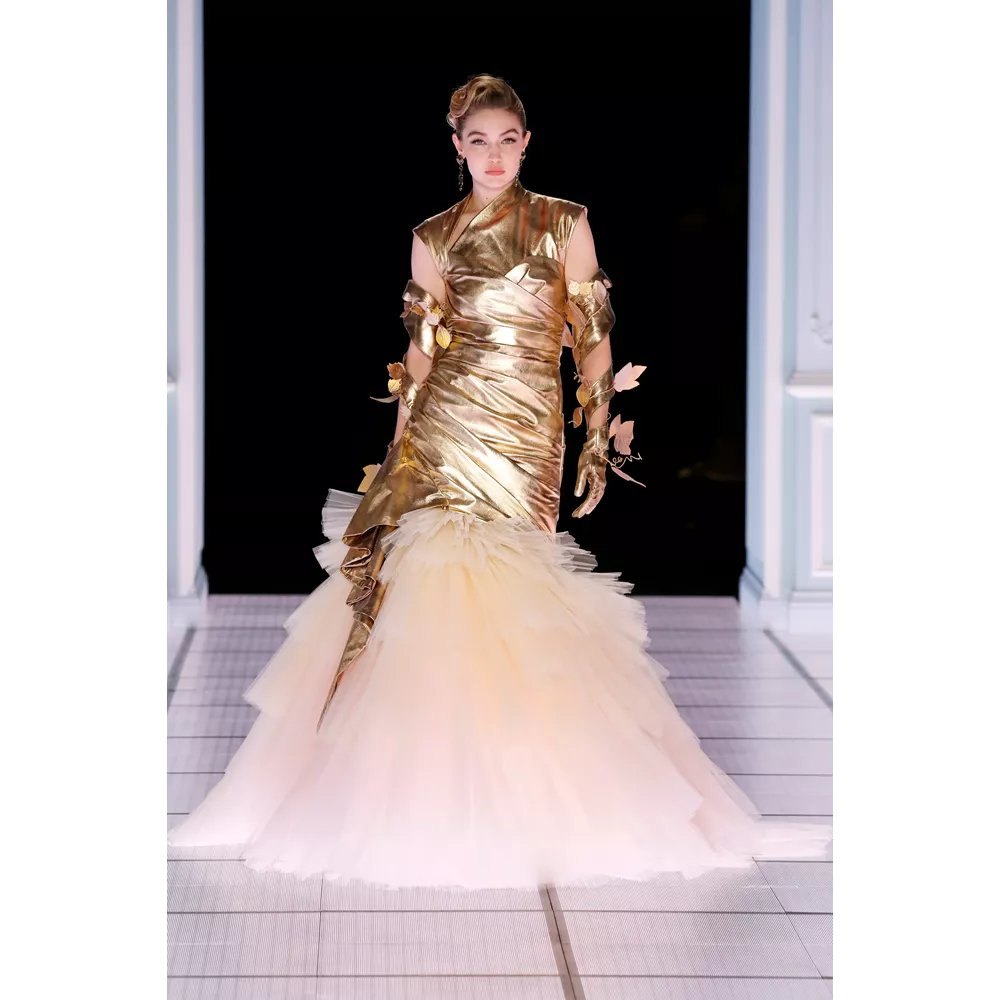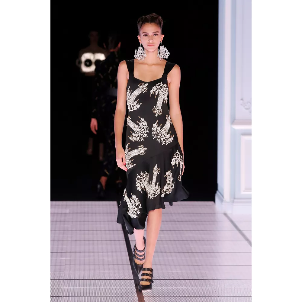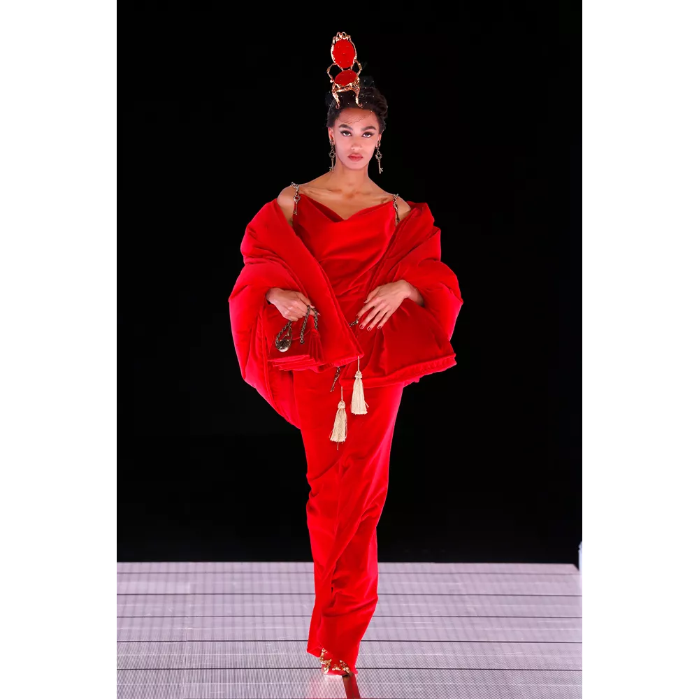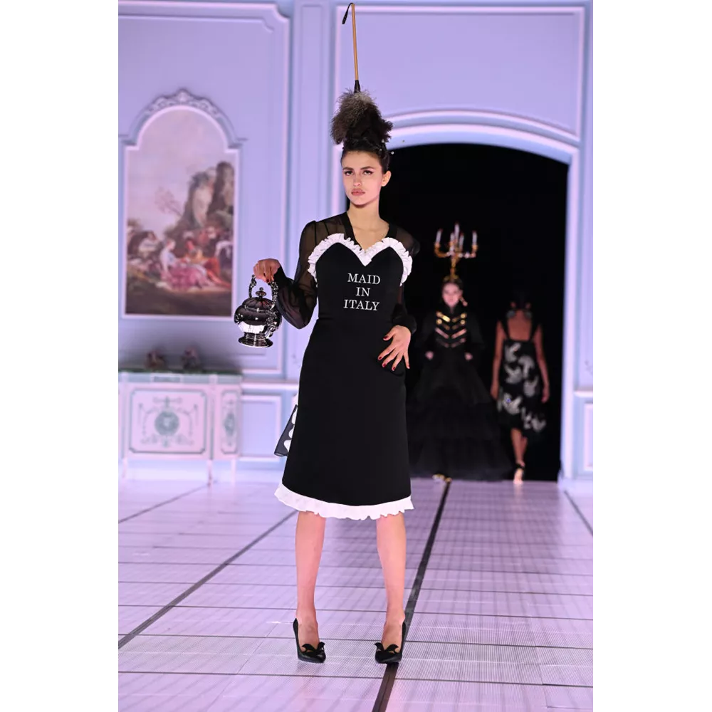 Το δράμα και η θεατρικότητα συνυπάρχουν με τον γνήσιο σουρεαλισμό στη συλλογή Moschino FW'22, που τιμά για μία ακόμα φορά την κληρονομία του- το σακάκι με τα μαχαιροπίρουνα, το μαύρο φόρεμα με το slogan "girl without guilt" αναβιώνουν αρχειακά κομμάτια, κι αν έχετε καμία αμφιβολία για το ποιος θα μπορούσε να εμπιστευτεί αυτή την υπερβολή στο ντύσιμό του, ιδίως μια συλλογή που αναφέρεται στο RTW, η απάντηση είναι ότι διανύουμε την εποχή που ο σουρεαλισμός αναβιώνει ξανά στη μόδα (βλ. Schiaparelli) και το στιλ αναζητά να εκφραστεί ξανά έντονα και μοναδικά - μέσα από τα επιμέρους κομμάτια, τα αξεσουάρ, το styling. Και ο Jeremy Scott με τον οίκο Moschino που ακολουθούν πιστά τη φιλοσοφία της χωρίς περιορισμούς δημιουργικής ελευθερίας, της υπερβολής που σ' αφήνει άναυδο, του πολύχρωμου εκκεντρισμού συμβαδίζουν απόλυτα με την εποχή.