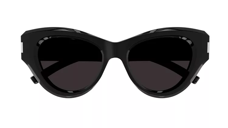 Η εξέλιξη της μάσκας εκφράζει δύναμη και σιγουριά, συνδυάζοντας το υπερμέγεθες μπροστινό μέρος με πλαστική μπάρα και με βραχίονες σε λεπτό μέταλλο. Αυτή τη σεζόν υπάρχουν γωνίες ακόμη και στους στρογγυλούς σκελετούς, σε unisex γυαλιά ηλίου και οράσεως διακοσμημένα με τα μεταλλικά décor Saint Laurent.
