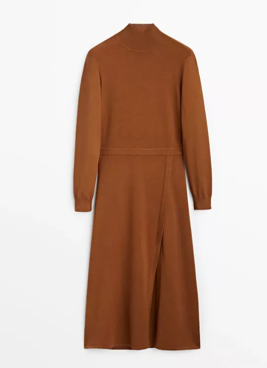 Πλεκτό φόρεμα με σχίσιμο Massimo Dutti