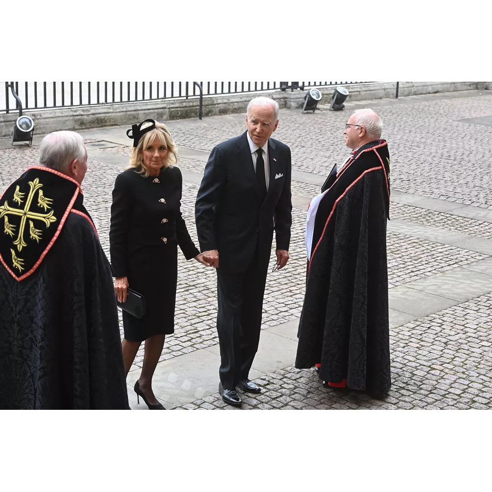 Πολλοί στάθηκαν και στην εμφάνιση της πρώτης κυρίας των Η.Π.Α, Jill Biden, που για την περίσταση φόρεσε ένα μαύρο ταγιέρ Schiaparelli που υπήρχε ήδη στη γκαρνταρόμπα της, και ένα ιδιαίτερο headpiece που θύμιζε μαύρη κορδέλα δεμένη στα μαλλιά, ενώ η πάντα κομψή σύζυγος του Γάλλου Προέδρου, Emmanuel Macron, Brigitte, επέλεξε να συνδυάσει slim -fit μαύρο φόρεμα με μαύρο παλτό και pillbox καπέλο.