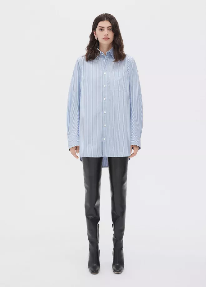 Η Margot Robbie έκανε copy ένα από τα look που εμφανίστηκαν στην πασαρέλα του Bottega Veneta για τη σεζόν Φθινόπωρο/Χειμώνας 2022-2023, φορώντας ένα oversized πουκάμισο σε λευκό χρώμα και ρίγες σε baby blue απόχρωση με δερμάτινες over-the-knee μπότες που είχαν επίσης τον ρόλο του παντελονιού. Ολοκλήρωσε την εμφάνισή της με το it accessory του οίκου, δηλαδή τη Brick Cassette τσάντα σε βουργουνδί απόχρωση.