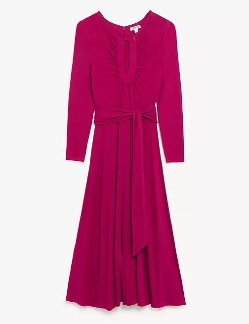 Ζέρσεϊ μάξι φόρεμα σε γραμμή skater με στρογγυλή λαιμόκοψη Jaeger, Marks & Spencer.