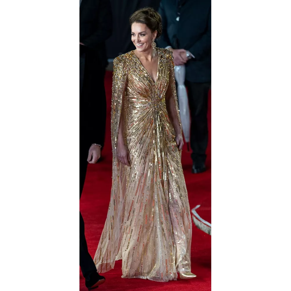 Το 2021, η Kate Middleton είχε περπατήσει στο κόκκινο χαλί για την πρεμιέρα της ταινίας "No Time to Die" με μία δημιουργία υψηλής ραπτικής που είχε την υπογραφή της Jenny Packham. Η στιλιστική συμβουλή που αξίζει να κρατήσετε από το εν λόγω look είναι πως το χρυσό είναι πάντα η πιο κομψή επιλογή για τις επίσημες περιστάσεις των γιορτών, ειδικά εάν σας αρέσει το glam style.