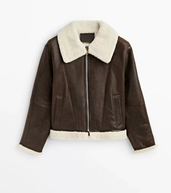 Τζάκετ αεροπορίας από μουτόν και δέρμα Massimo Dutti