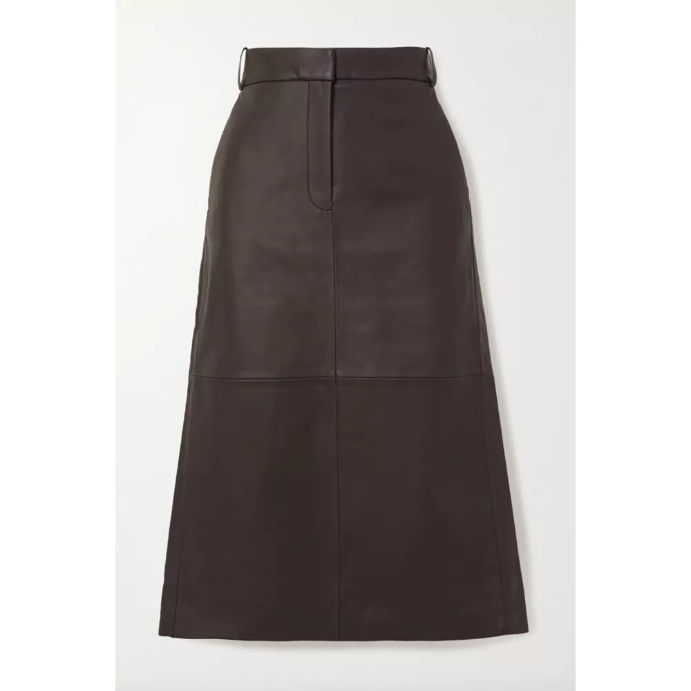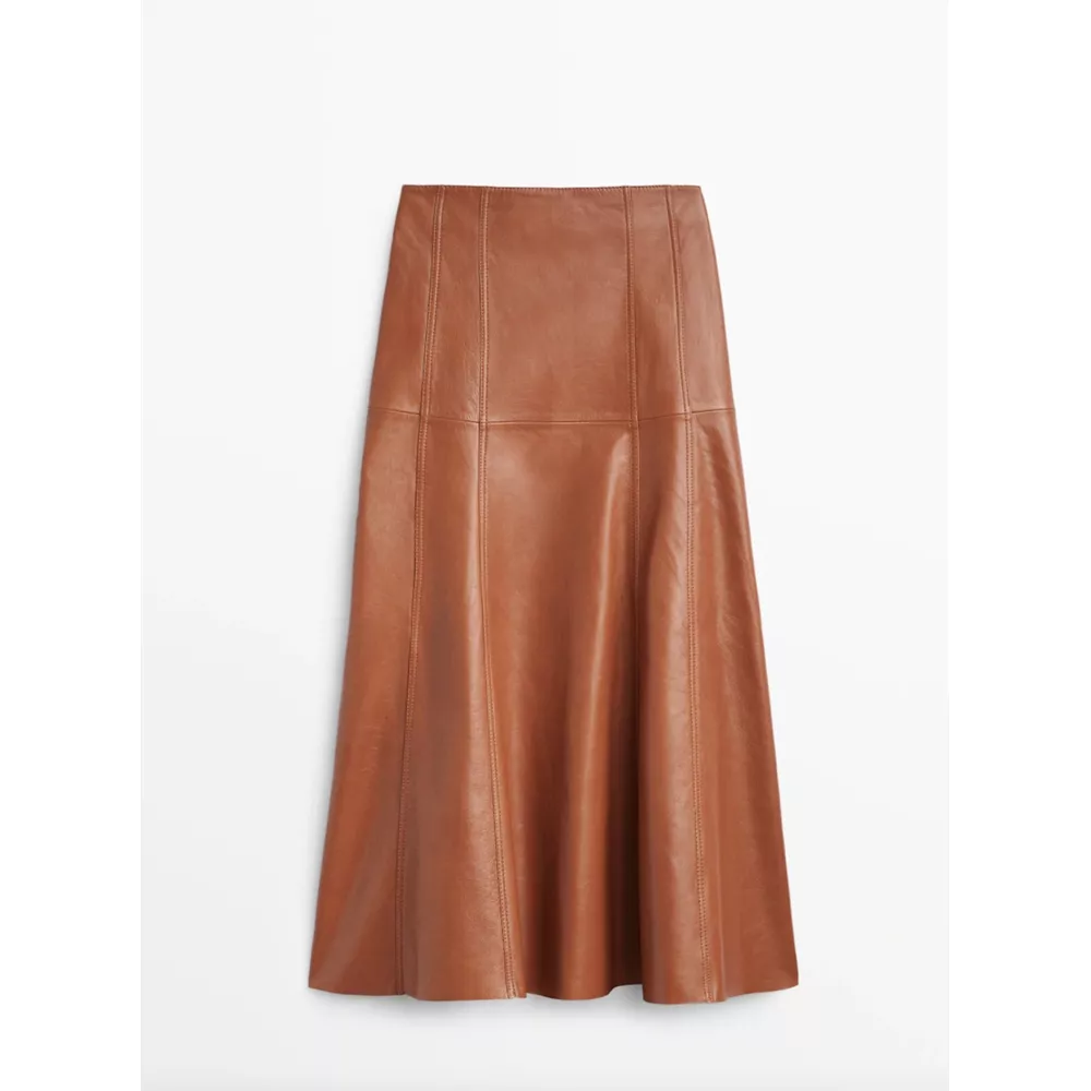 Μακριά φούστα από δέρμα νάπα με ραφές Massimo Dutti