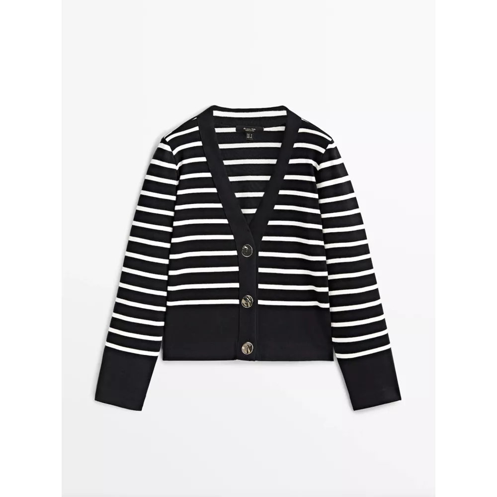 Βαμβακερή ζακέτα με ρίγες και κουμπιά Massimo Dutti