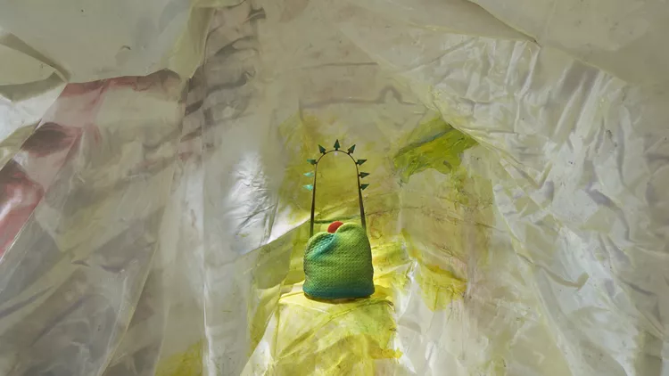 "Ο χώρος στον οποίο παρουσιάζουμε τις τσάντες είναι ένα "σπήλαιο". Είναι στενό και μπορεί να το διασχίσει ένας κάθε φορά, είτε υπογείως είτε από πάνω θα βρει τρόπο να το περάσει. Αυτό μέσα από το οποίο στην πραγματικά περνάει κανείς είναι το περίγραμμα μίας φιγούρας που προορίζεται για καλάθι. Αντιπροσωπεύει σχεδόν μια νίκη - δεν είναι ξεκάθαρο αν τελικά τα καταφέρνει να μπει. Σ' αυτή την περίπτωση, η νίκη είναι η ανακάλυψη της γλώσσας της αναπαράστασης. Αφορά το άνοιγμα σε νέους τρόπους σχεδιασμού", θα δηλώσει ο Gaetano Pesce για το installation που δημιούργησε, έχοντας την πλήρη ελευθερία ως προς το καλλιτεχνικό όραμα.