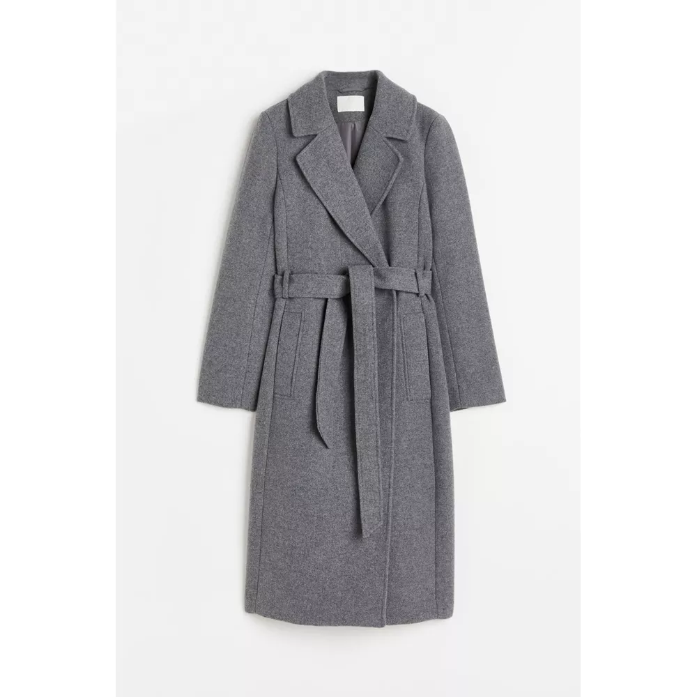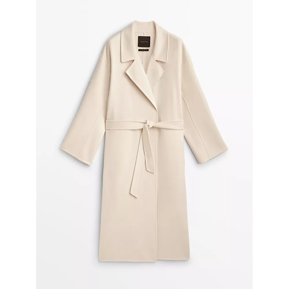 Δετό παλτό από μείγμα μαλλιού με ζώνη, Massimo Dutti.