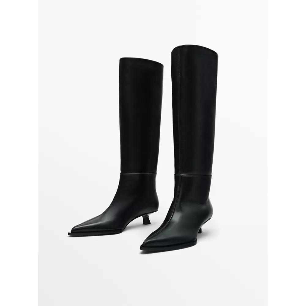 Δερμάτινες μπότες με τακούνι Limited Edition, Massimo Dutti.