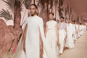 Η Elizabeth Debicki ήταν εκθαμβωτική φορώντας μια δημιουργία υψηλής ραπτικής του οίκου Dior. To μακρύ φόρεμά της από georgette crepe στο λευκό της κιμωλίας κεντημένο με μικροσκοπικές πούλιες, πέρλες και χάντρες ανήκει στη συλλογή Dior Haute Couture Autumn-Winter 2023-2024 και αποτελεί ένα μοναδικό δείγμα φινέτσας με τη λιτή του γραμμή και τις χειροποίητες, εκλεπτυσμένες λεπτομέρειες στη διακόσμησή του. Η ηθοποιός ολοκλήρωσε το look της με σκουλαρίκι Couture Dior από λευκόχρυσο και διαμάντια, ένα Bois De Rose earcuff σε λευκόχρυσο με διαμάντια, δαχτυλίδια από τη σειρά Bois de Rose σε λευκόχρυσο, ροζ χρυσό και διαμάντια και ένα RoseDior βραχιόλι από λευκόχρυσο και διαμάντια από τη συλλογή κοσμημάτων του οίκου Dior Joaillerie.