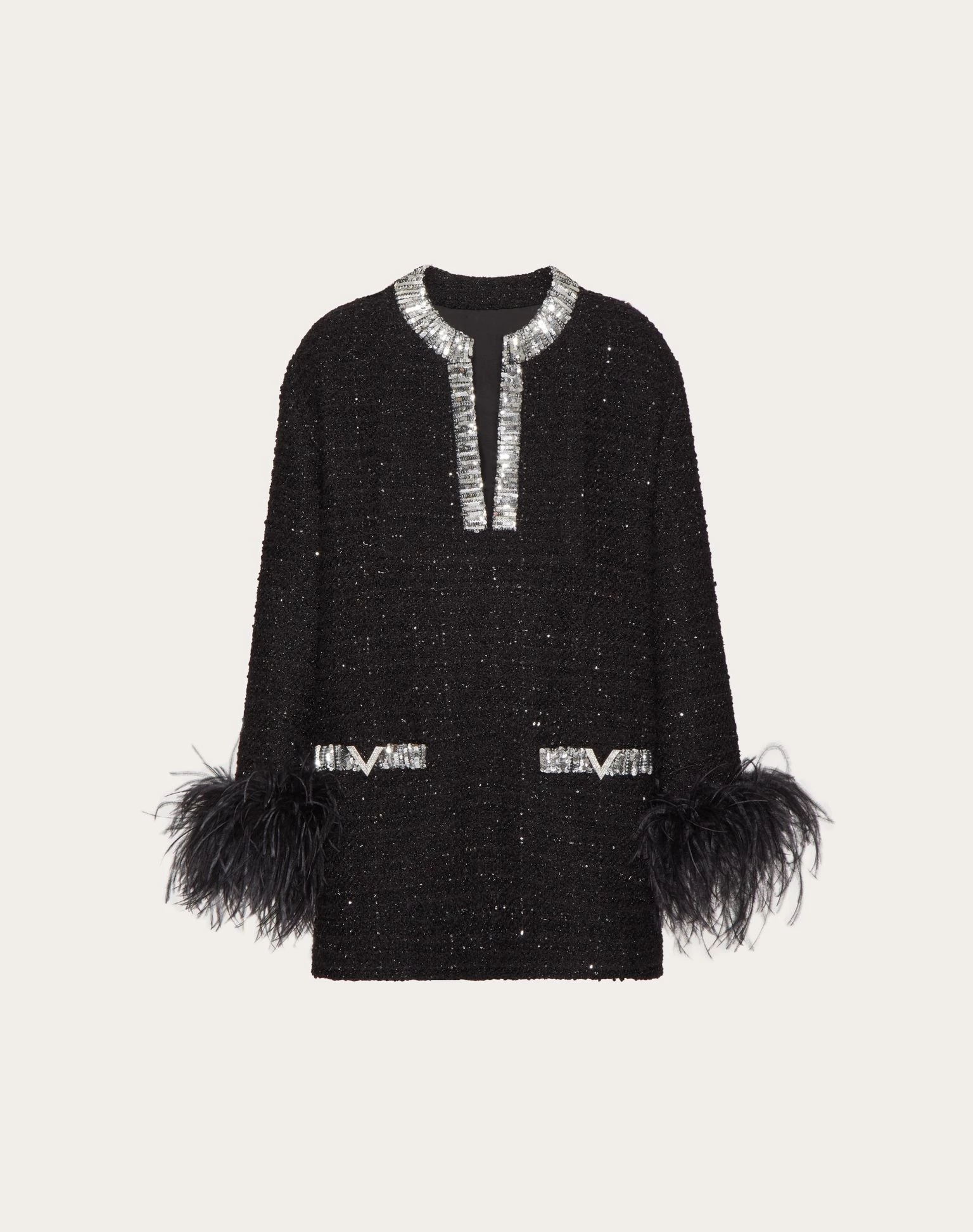 Tweed μίνι φόρεμα με πούλιες και φτερά, Valentino.